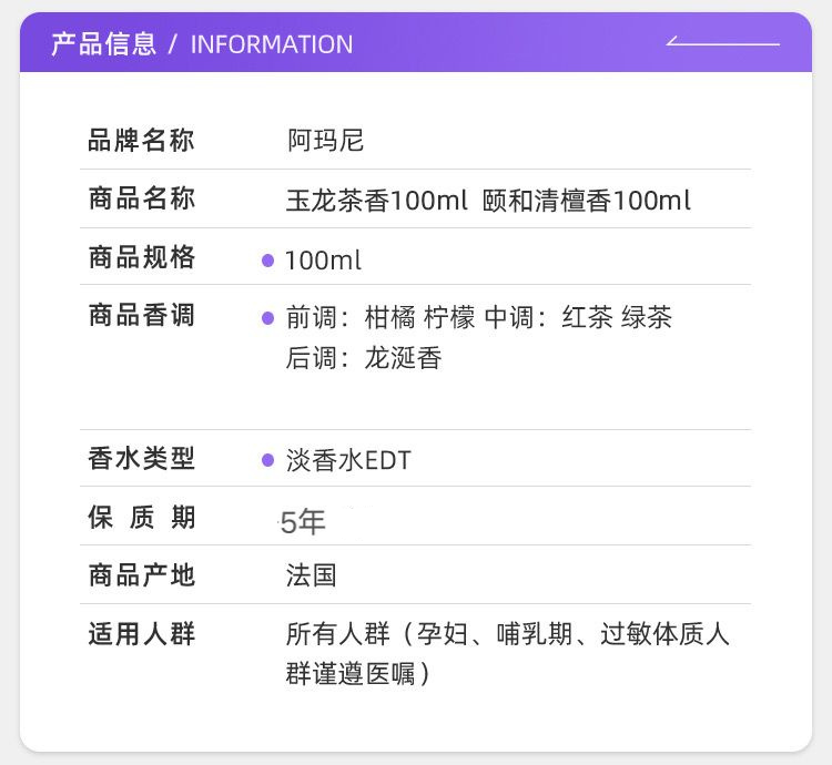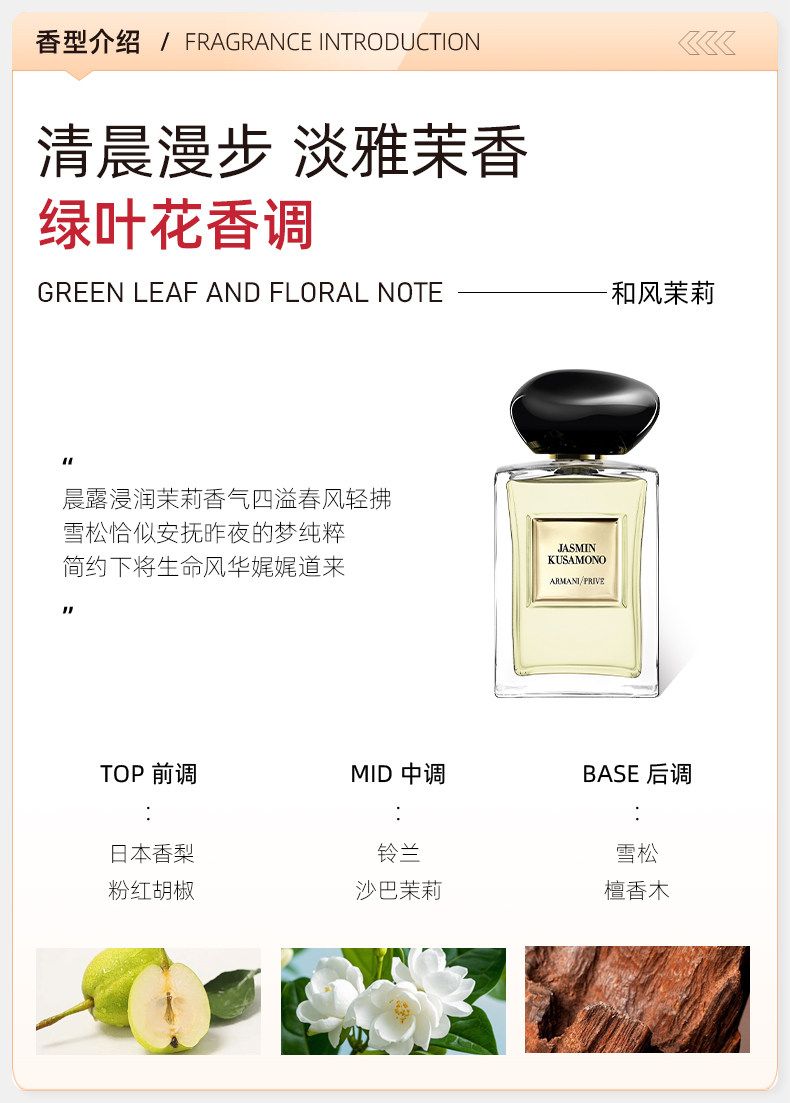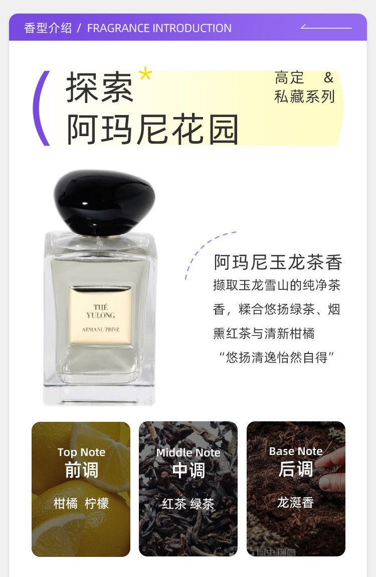 阿瑪尼玉龍茶香高定私藏香氛清新柑橘茉莉木質雪松